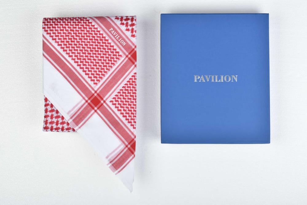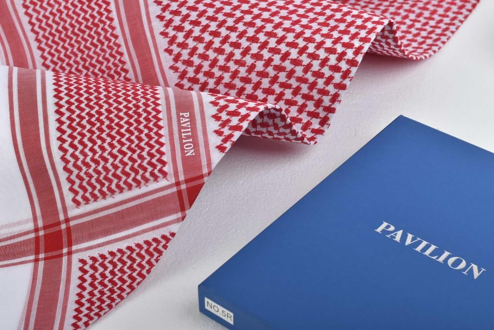 شماغ رجالي فخم احمر من بافليون موديل 5R حيث يلتقي التراث العربي العريق مع لمسة من الفخامة العصرية تصميمه الأنيق و ألوانه الغنية تليق بالرجل الذي يبحث عن التميز في كل مناسبة.